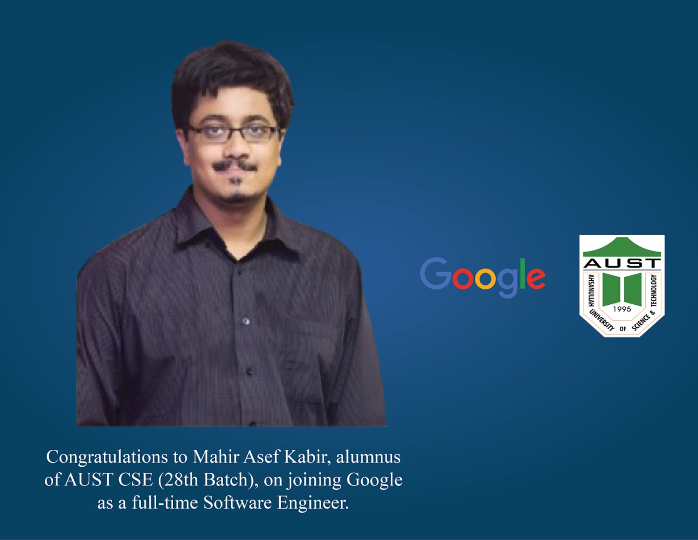 The AUST CSE family warmly congratulates Md. Mahir Asef Kabir and wishes him continued success in his career and future endeavors.