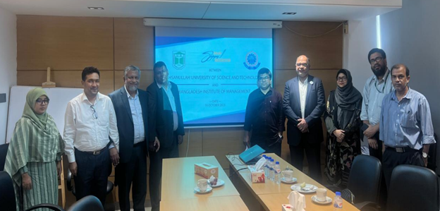A Memorandum of Understanding (MoU) was signed between Ahsanullah University of Science and Technology (AUST) and the Bangladesh Institute of Management (BIM) on October 16, 2025, at the Vice-Chancellor’s Conference Room, Level 4, Block D of AUST.
