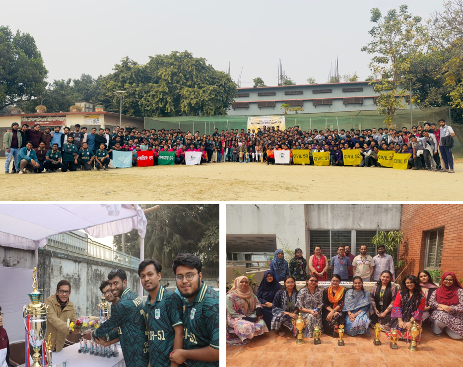 The AUST Civil Engineering Society (ACES) organized a sports event on 8th to10th of January 2026, bringing together students for two days of competitive sports. The sports events were arranged by Batch 51 (2nd year/2nd semester). In the male segment, the cricket Tournament, Pratyoik 47 claimed the championship title, while Ekattik 48 A became the runner-up. For the female segment, in the badminton, Tanisa and Nila from Batch-51 emerged as champions, while Lamia and Antara from Batch-52 secured the runner-up position. The score and sketch segment highlighted both creativity and analytical skills, with Borno and Tanha from Pratyoik 47 winning the championship and Adrita and Zeba from Batch-50 finishing as runners-up. The sports event not only highlighted the students' athletic abilities but also reinforced a strong sense of unity and sportsmanship within the AUST community. ACES has once again proven its commitment to organizing engaging and inclusive activities, contributing to the vibrant spirit of the university. With the success of this event, expectation is high for more exciting activities in the future.