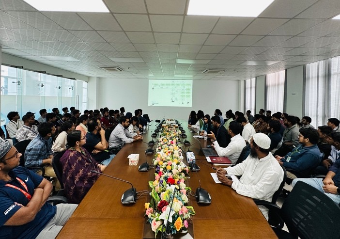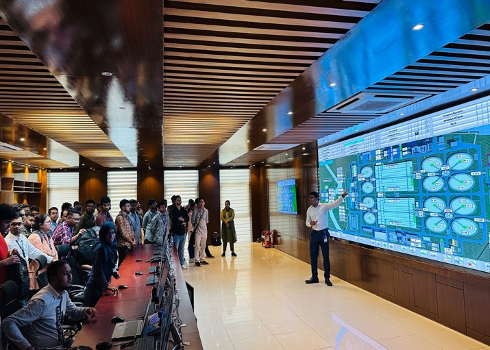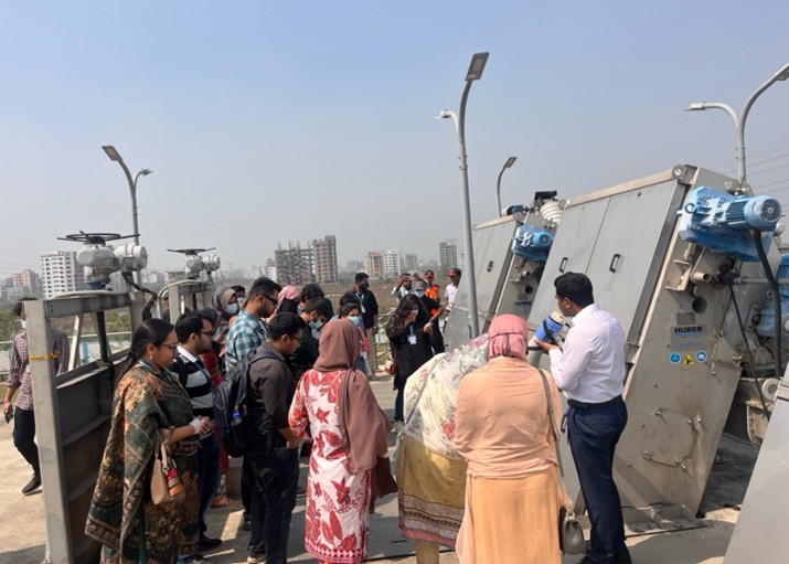 Upon reaching the DSTP, the students received a warm reception from important figures responsible for operating and overseeing the plant. Among them were Momtajur Rahman, the Executive Engineer at Dasherkandi STP, DWASA, and Rajib Ahmmed, serving as the Sub Divisional Engineer at DWASA. Prior to starting the tour, the students received an extensive briefing that covered the historical context and operational methods of the Dasherkandi STP. This briefing enabled the students to understand the broader importance of the plant in ensuring the safe release of treated wastewater into the adjacent water body.
