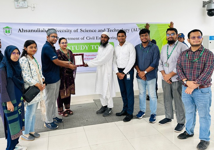 The presentation also illuminated the different phases of the sewage treatment process, the machinery employed, and the quality assurance protocols implemented to ensure the safe release of treated wastewater. Students were encouraged to interact with the speakers, posing questions to enhance their comprehension of the topic. In a gesture of gratitude for the warm welcome, valuable insights, and hospitality provided by the staff at the Dasherkandi sewage treatment plant (DSTP), the AUST Civil Engineering Society (ACES) presented crests to Momtajur Rahman, the Executive Engineer at Dasherkandi STP, DWASA.