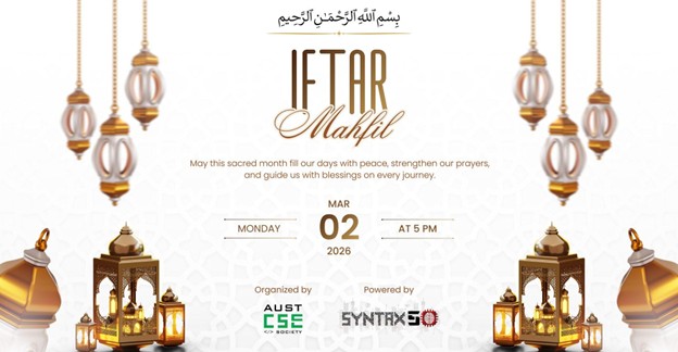 On 02 March 2026 Monday, an Iftar Mahfil was organized by the AUST CSE Society. The event was overseen by the 3rd year 2nd semester students of Syntax 50 batch.