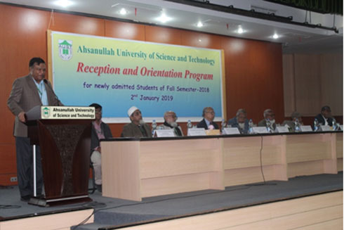 A Day-long program was organized for Reception and Orientation for Fall Semester-2018 of Ahsanullah University of Science and Technology. The program was held in two phases at M.H Khan Auditorium on 02nd January 2019. Founder VC and Advisor of AUST Prof. Dr. M. H Khan graced the program as the Chief Guest while Pro-VC (in charge) and Treasurer Prof Dr. Kazi Shariful Alam honored the admitted students with his presence as Special Guest. The program was chaired by Prof. Dr. A.M.M Safiullah, Vice-Chancellor of AUST.